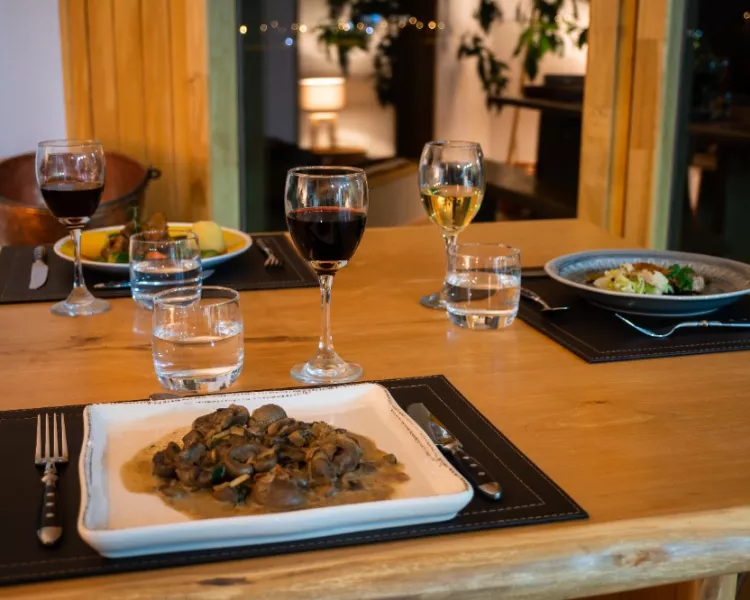 The meal includes: Aperitif, starter, main course, dessert, tea/coffee/ fresh infusion, Chilean wine