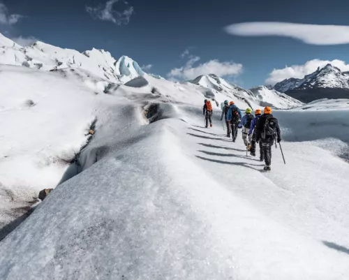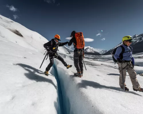 Terminada la revisión de seguridad, comenzará la incomparable aventura de caminata en hielo por cerca de 2,5 horas sobre el Glaciar Grey, observando grietas, ríos, lagunas, túneles y cuevas de hielo. Podremos realizar una pausa en este inmenso paisaje, para disfrutar de un té caliente y un snack.