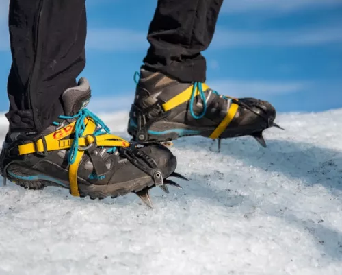 La excursión inicia desde el refugio Grey donde nuestros guías y pasajeros tomaran nuestro bote hacia la isla Nunatak, incrustada en el medio del glaciar. Una vez ahí, iniciamos una caminata que puede durar entre 40 minutos y 1 hora hasta llegar al acceso al hielo. Este trayecto es cerro arriba en terreno rocoso y tiene una dificultad media.