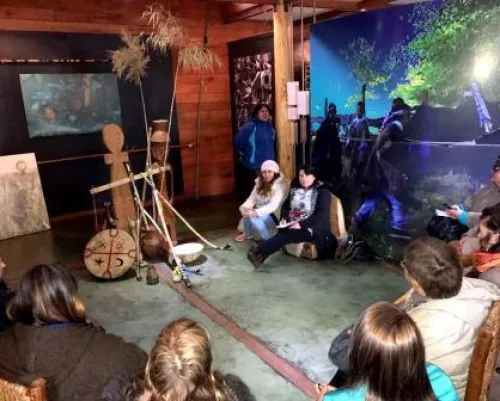 Los visitantes y el guía local se reunirán en la plaza de Kurarewe para la bienvenida y presentación del programa. El grupo caminará hasta la Aldea Intercultural Trawupeyum y el museo que alberga. Aquí destacan los instrumentos y recopilaciones de relatos mapuche. La ruta continúa con el traslado hasta Maichín bajo donde, alrededor de un fuego y compartiendo un mate caliente, una ñaña conversará sobre algunos conocimientos que posee sobre diversos aspectos de la cultura mapuche.